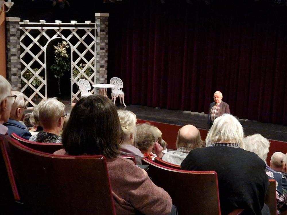Varkauden Eläkkeensaajien puheenjohtaja Heikki Alanen toivotti teatterivieraat tervetulleiksi.